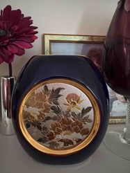 Japanese Chokin Art Cobalt Blue Porcelain Vase
