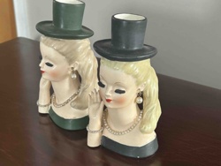 Vintage Mid-Century Lady Head Vases in Top Hats