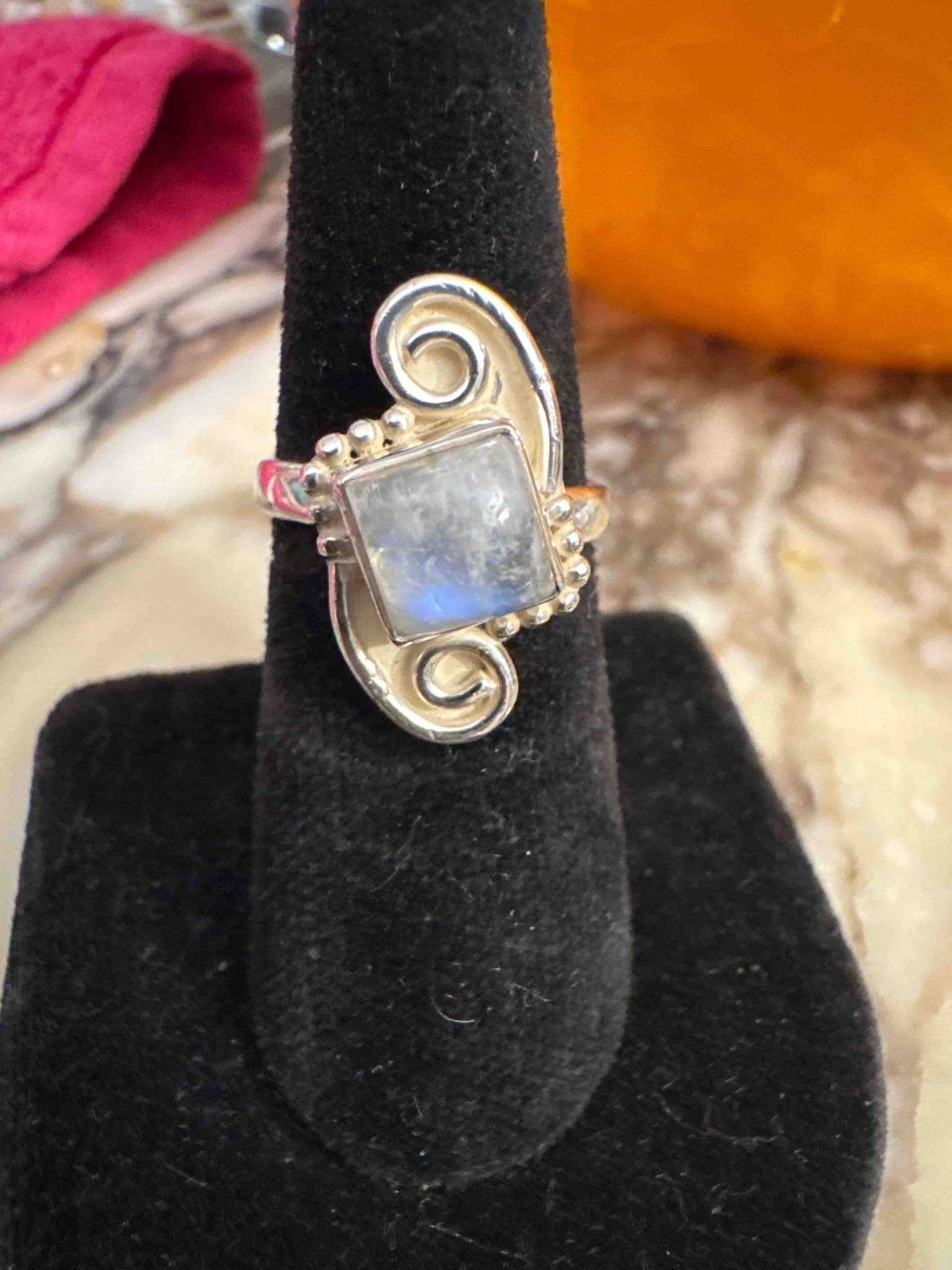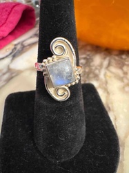 Sterling Silver and Square-Cut Rainbow Moonstone Artisan Ring