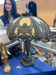 Early 20th Century Slag Glass Table Lamp with Filigree Overlay