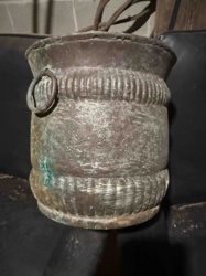 Antique Hand-Hammered Copper Vessel with Verdigris
