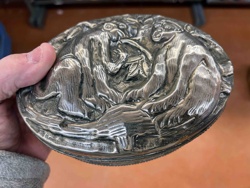 Hand-Hammered Silver Repoussé Trinket Box with Primate Motif