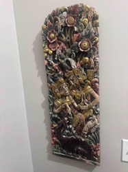 Balinese Hand-Carved Polychrome Wood Relief Panel
