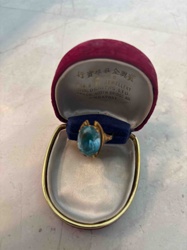 Gold ring with large blue gemstone