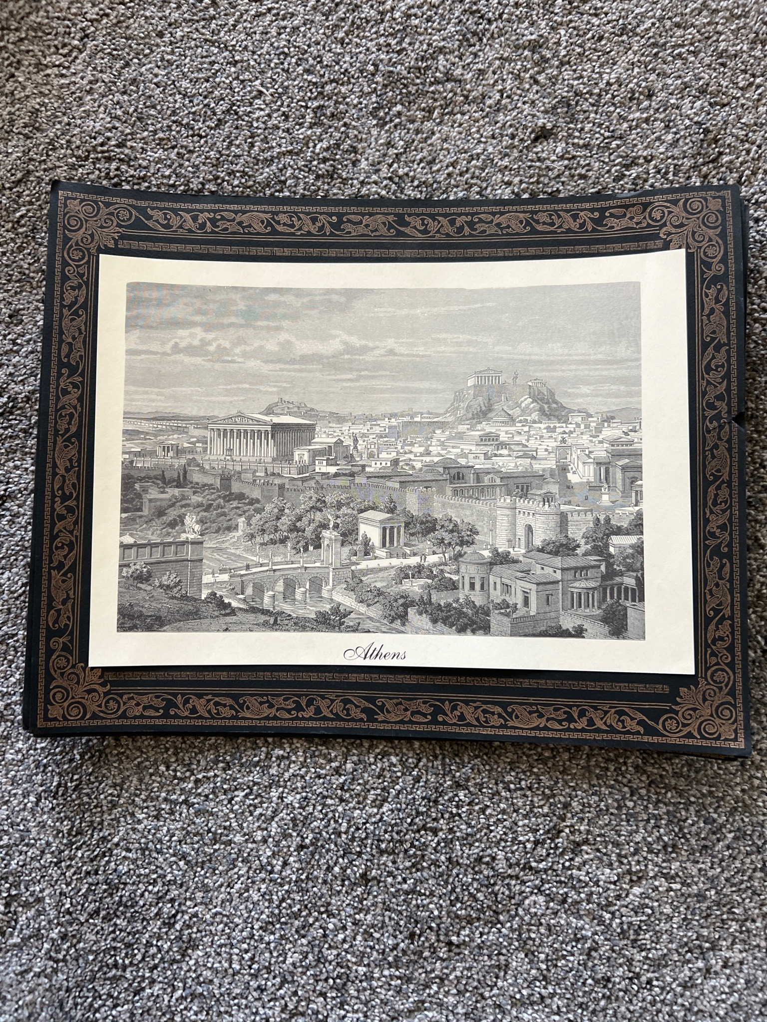 Classical Engraving of Athens with Neoclassical Decorative Border