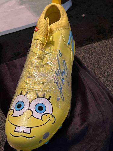 Ladd McConkey Signed SpongeBob SquarePants Custom Football Cleat
