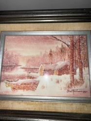 Framed Cottage Landscape Painting