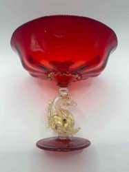 Ruby Red and Aventurine Glass Double Dish with Clear Base