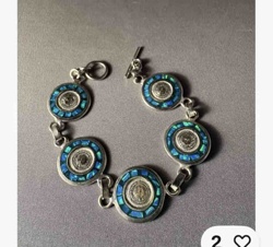 Sterling Silver Aztec Calendar Blue Opal Mosaic Link Bracelet