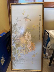 Framed Vintage Chinese Silk Embroidery with Faux-Bamboo Frame