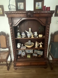 Spanish Baroque Style Carved Wood Open Bookcase or Display Cabinet