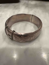 Vintage Engraved Sterling Silver Hinged Bangle Bracelet