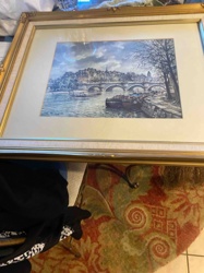 Framed Hand-Colored Etching or Lithograph of a European Village