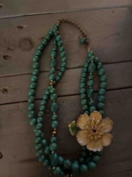 Vintage Multi-Strand Teal Bead Necklace with Enamel Flower Pendant