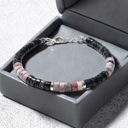 Mixed Stone Heishi Bead Bracelet with Silver Hardware