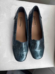 Comfortview Faux-Croc Patent Loafers in Metallic Teal