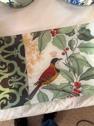 Decorative Decoupage Glass Tray with Botanical Bird Motif