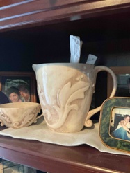 Embossed Ceramic Acanthus Leaf Pitcher and Basin Set