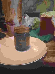 Small Mason Jar with Textured Metal Lid and Dark Label
