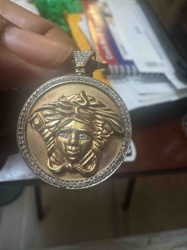 14k Yellow Gold and Diamond Medusa Head Pendant (Versace Style)