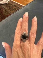 Vintage Oval Black Onyx or Glass Cabochon Ring