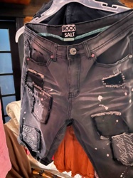 Rock Salt Distressed Patch Denim Shorts