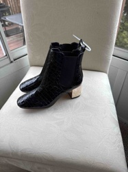 Women's Croc-Embossed Patent Chelsea Boots with Metallic Block Heel
