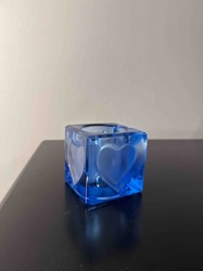 Orrefors Blue 'Amour' Crystal Heart Votive Candle Holder