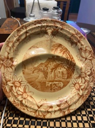 Vintage Brown Transferware Ceramic Ashtray