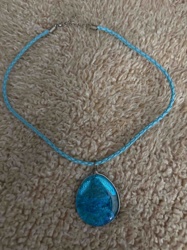 Teardrop Blue Resin Pendant on Braided Cord Necklace