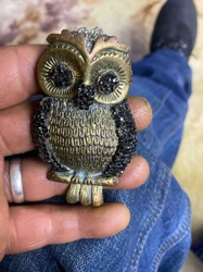 Vintage Rhinestone and Antiqued Brass-Finish Owl Figurine