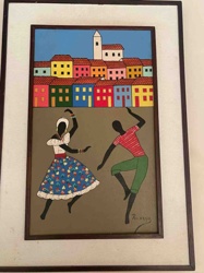 Naïve Style Painting of Brazilian Dancers and Village by Pelaggia