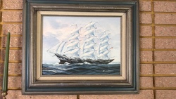 Framed Clipper Ship Nautical Oil Painting by K. Maskell