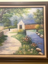 Autumn Landscape Painting of a Covered Bridge Signed by Pffer