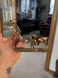 Vintage Brutalist Welded Brass Figurine of a Peon and Burro
