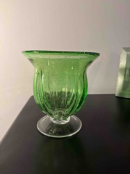 Mid-Century Blown Bubble Glass Vase in Emerald Green