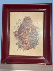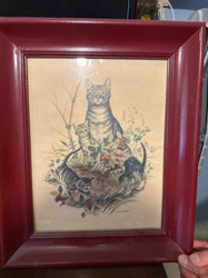 James Lockhart Tabby Cat and Kittens Lithograph in Wood Frame
