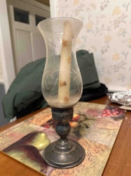 Vintage Silver-Plated Hurricane Lamp with Etched Grapevine Globe