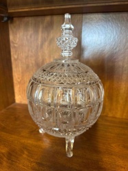 Clear Pressed Glass Footed Covered Candy Dish or Compote