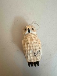 Hand-Carved Wooden Snowy Owl Hanging Figurine