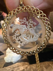 Intaglio Carved Rock Crystal Zodiac Capricorn Pendant