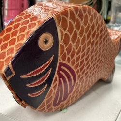 Hand-Tooled Leather Fish-Shaped Coin Bank