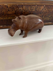 Hand-Carved Mahogany Wood Hippopotamus Figurine