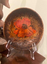 Hand-Carved and Pyrographed Wooden Poppy Plate