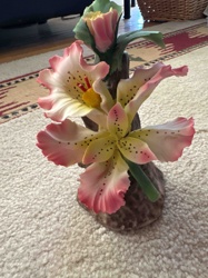 Porcelain Floral Arrangement Centerpiece on Wood Base