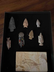 Mixed Collection of Arrowheads, Southwestern Jewelry, and Knightia Fish Fossil