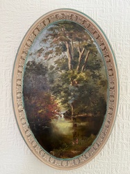 Oval Oil-on-Ceramic Plaques Landscape Painting