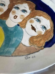 Hand-Painted Ceramic Art Plate featuring Stylized Female Figures