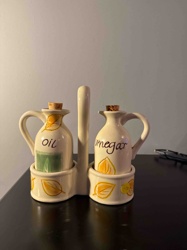 Vintage Ceramic Oil and Vinegar Cruet Set with Caddy
