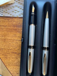 Waterman Hemisphere Matte Silver with Gold Trim Fountain Pen and Ballpoint Pen Set